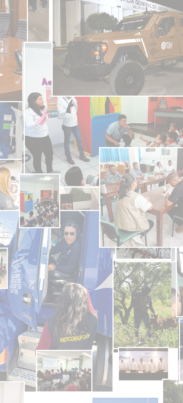 Los resultados de las actividades sustantivas y administrativas que se plasman en este primer informe de gestión, son el producto de una adecuada coordinación entre las autoridades involucradas en la seguridad pública tanto estatales como federales, así como los Poderes Legislativo y Judicial.